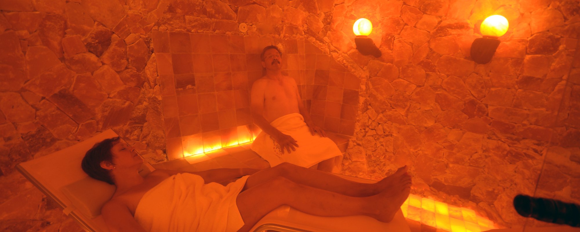 Gegenüber konventionellen Saunen bietet das Salzparadies-Salionarium und die Licht-Kristallgrotte ein sanftes Schwitzen bei einem angenehmen und verträglichen Temperaturbereich zwischen 38°-45°C und vermeidet das belastende Einatmen heißer Luft.